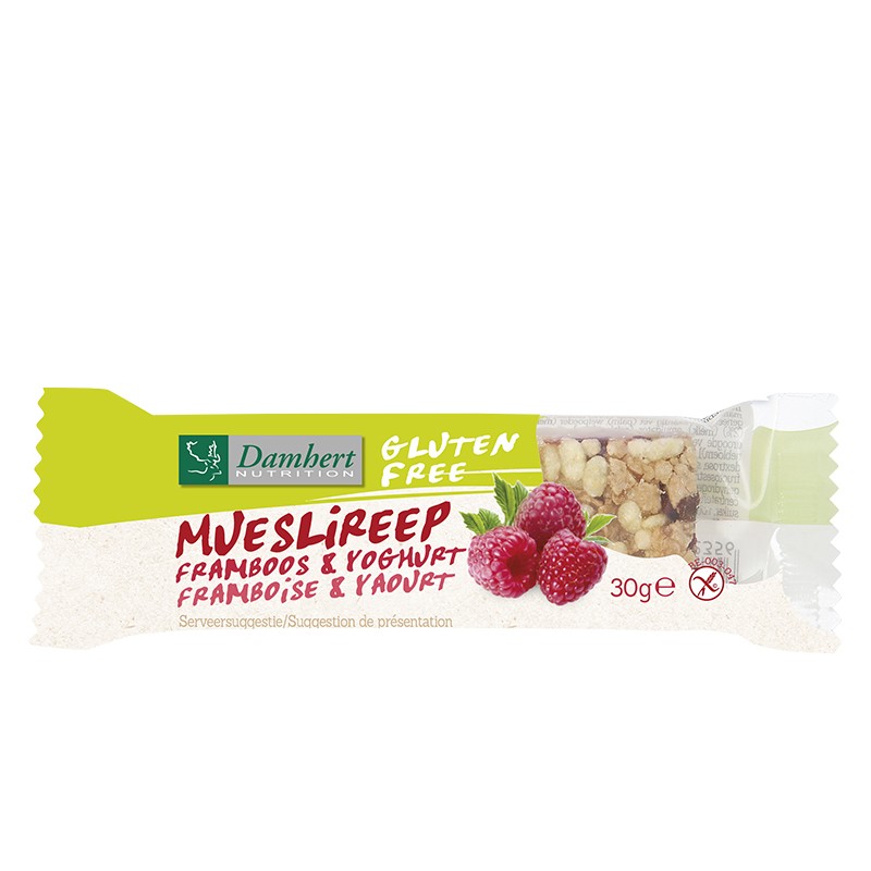 1,25 € (2.44 лв.)Мюсли бар с малини и йогурт (без глутен), 30 g