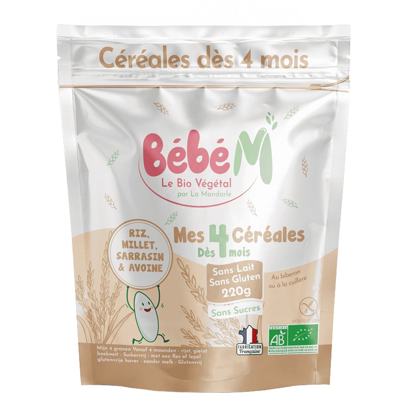 44,62 € (87.27 лв.)Bébé M Каша с 4 зърнени култури, БИО – За бебета 4+ месеца, 220 g