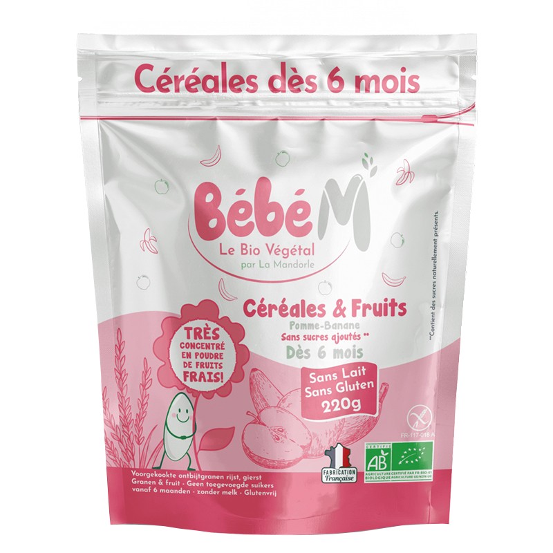 8,60 € (16.82 лв.)Bébé M Зърнена каша с ябълка и банан, БИО – За бебета 6+ месеца, 220 g