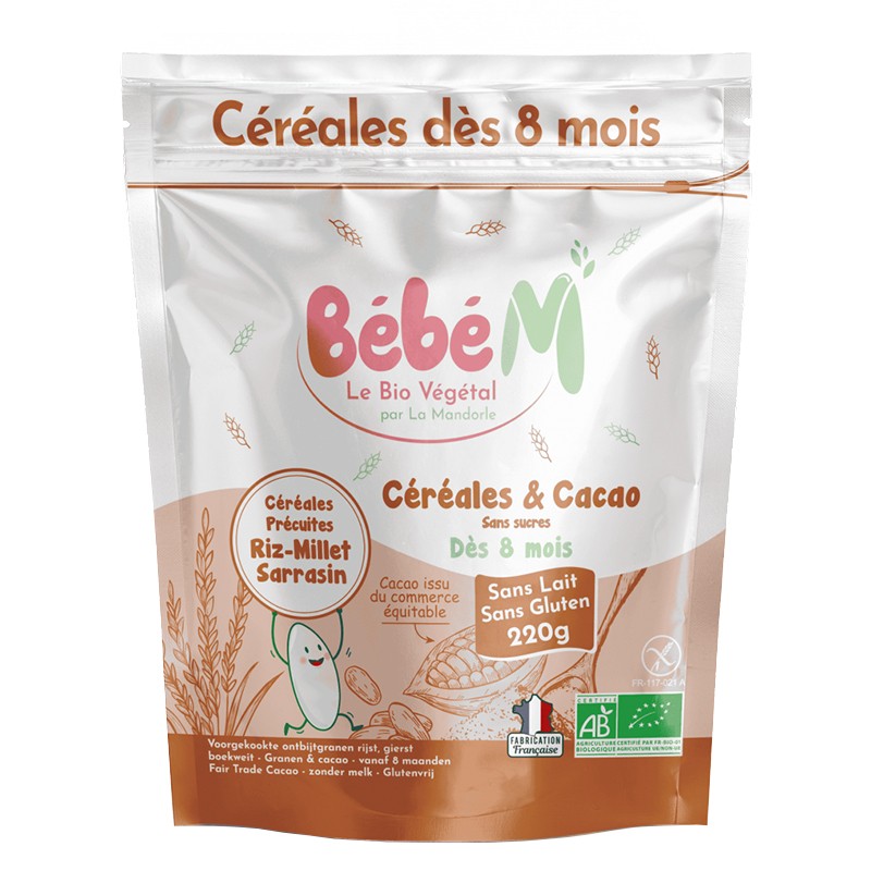 8,40 € (16.43 лв.)Bébé M Зърнена каша с какао, БИО – За бебета 8+ месеца, 220 g